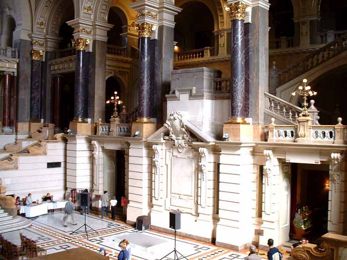 The neo-Renaissance palace the former Magistrates Court and former Appeals Court was built between 1893 and 1896 by Alajos Hauszmann. Above the fronton resting on six columns is a sculpture which is a reminder of the building's first function. It represents the goddess Justice with a chariot harnessed to three horses.