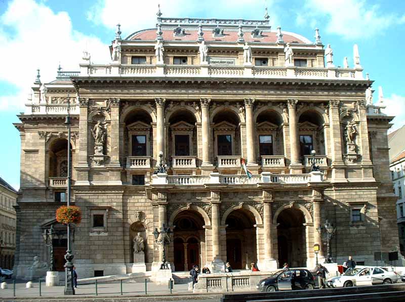 A Magyar Állami Operaház építése ( 1875 - 1884 ) Ybl Miklós nevéhez fűződik. Egyik legszebb neoreneszánsz középületünk. Homlokzati fülkéit Erkel Ferenc és Liszt Ferenc alakja, főpárkányát pedig híres operaszerzők szobrai díszítik Monteverditől Mozarton, Beethovenen, Rossinin, Wagneren, és Csajkovszkijn át Smetanáig, melyek Stróbl Alajos munkái.