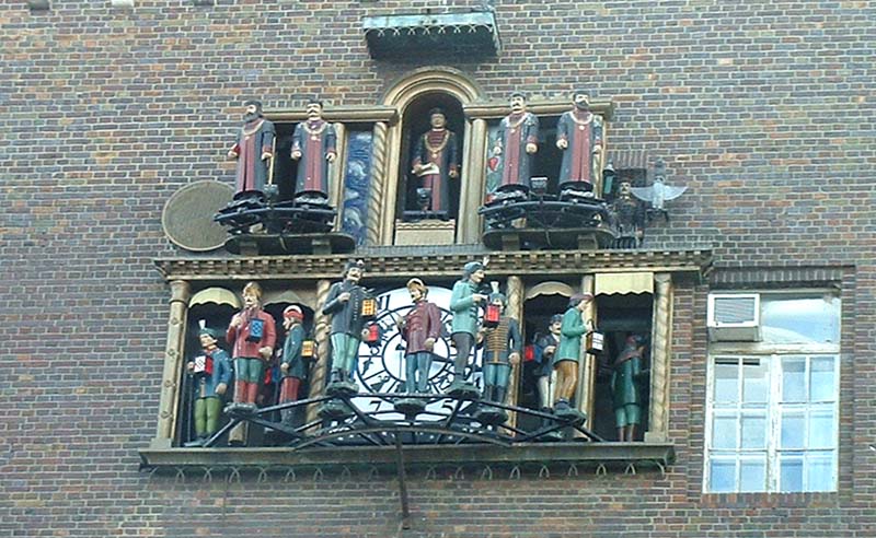 midday toll the figures of the Musical Clock, which show the university