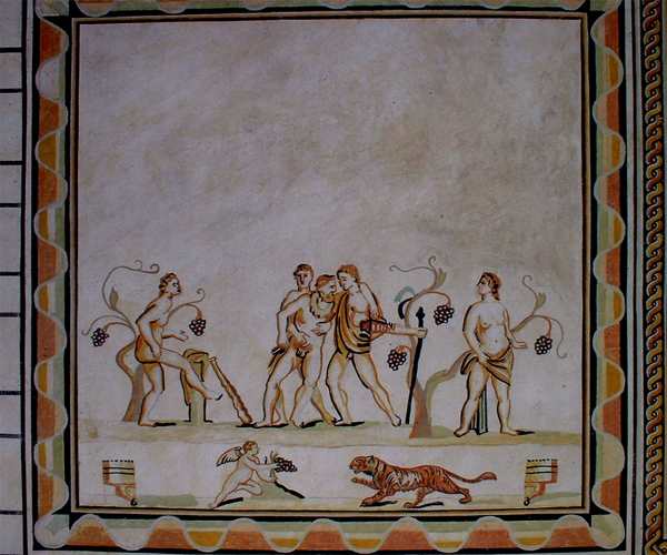Borongós, esős időben került sor a római kori időutazásra a „Van más programod?” túra keretén belül október 12-én, vasárnap. A hűvös, csapadékos idő ellenére tizenkét elszánt és jókedvű ember vágott neki a múlt felfedezésének. A köszöntő szavak- stílszerűen- a polgárvárosi amfiteátrum patinás falai között hangzottak el. Majd első állomásunk az Aquincumi Múzeum állandó kiállításának megtekintése következett szakszerű vezetés mellett. Miután magunkba szívtuk az új ismereteket (és a nedvességet), a feles létszámú, de továbbra is lelkes csapat készen állt az újabb információk befogadására. Mivel idegenvezetést csak a Múzeum tudott biztosítani, a továbbiakban én halmoztam el a tudásra éhes kompániát szerény ismereteimmel. A következő lépés a Hercules-villa értékeinek felfedezése volt. Hosszas keresés (és némi tócsaszlalomozás) után találtuk meg a romkertet. Jellemző a helyi viszonyokra, hogy egyetlen jelzés sem mutatta, hogy merre kell mennünk. Ezek után nem csoda, hogy ezt a jelentős nemzeti értékünket – az Európában egyedülálló, az időszámításunk szerinti 2. századból származó, kitűnő állapotban megmaradt mozaikokat-, a szakembereket leszámítva szinte senki sem ismeri. Bolyongtunk a fedett helységekben, mígnem a 9-es számmal jelzett félköríves záródású terembe érve megakadt a szemünk az ott látottakon: a mozaik három férfit (is) ábrázolt, két fiatalt és egy idősebbet. Az egyik fiatal intim módon öleli át (hátulról) az idősebbet, a másik ifjú gyöngéd pillantásától kísérve. Ezt a látványt szeretnénk most megosztani Veletek. Aki pedig nem hisz nekem, az járjon utána személyesen.