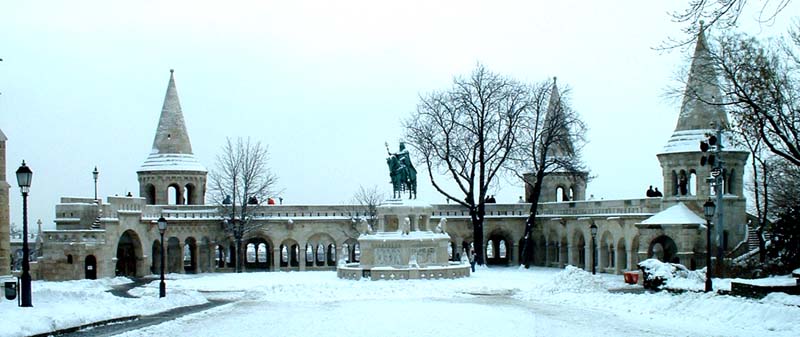 regally before the Fishermen's Bastion. Stephen I. the first king of Hungary,
